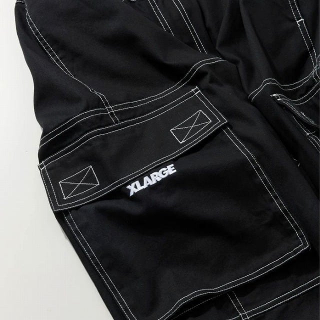 右サイドポケットとウエストバックル部分に配置したXLARGEロゴがもアクセントに。