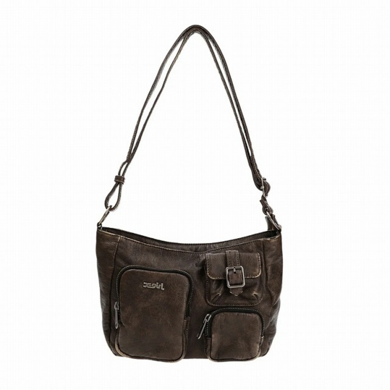 MULTI POCKET FADED FAUX LEATHER BAG