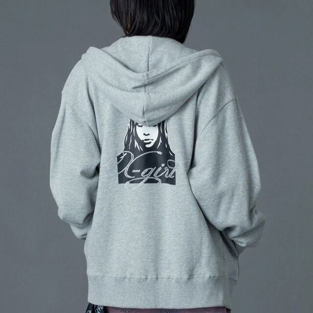 エックスガール パーカー X-girl RHINESTONE LOGO AND FACE ZIP UP SWEAT HOODIE レディース ジップアップフーディー 前開き ラインストーン 正規取扱店