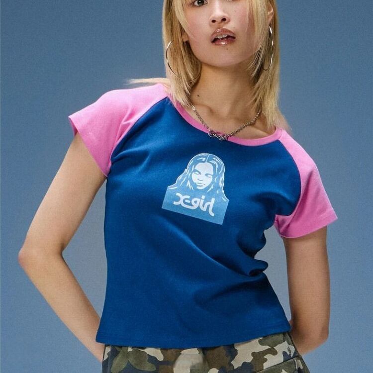 エックスガール Tシャツ レディース X-girl FACE RAGLAN S/S BABY TEE 半袖 コンパクト ラグラン トップス 人気 ブランド トップス 正規品