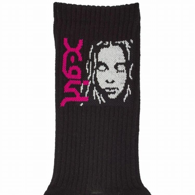 エックスガール ソックス X-girl SIDE LOGO FACE RIBBED SOCKS 靴下 ホワイト ブラック 学生 大人 人気 レディース ブランド 正規品