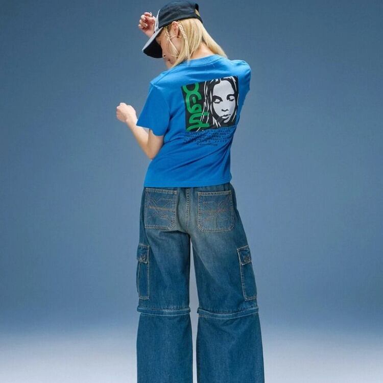 人気のFACEロゴとミルズロゴを組み合わせたグラフィックが目を惹く半袖Tシャツ。