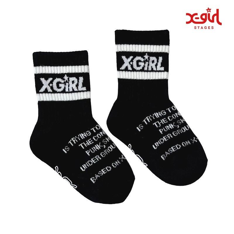 X-girl Stages エックスガールステージス スランテッドロゴラインクルーソックス キッズ こども 靴下 おしゃれ